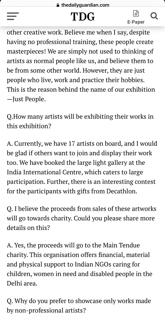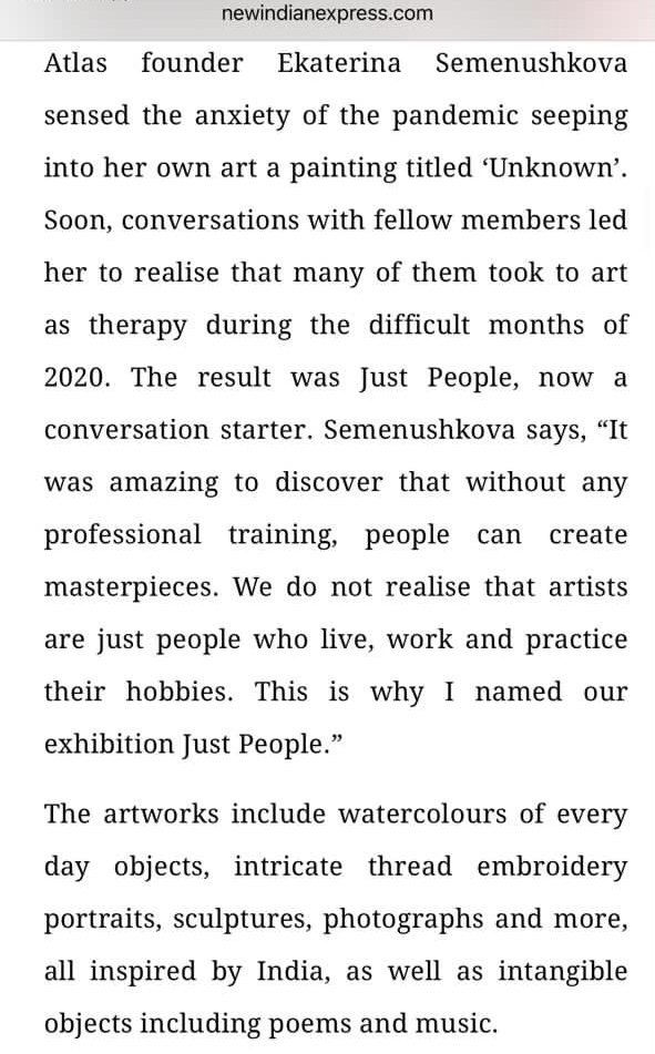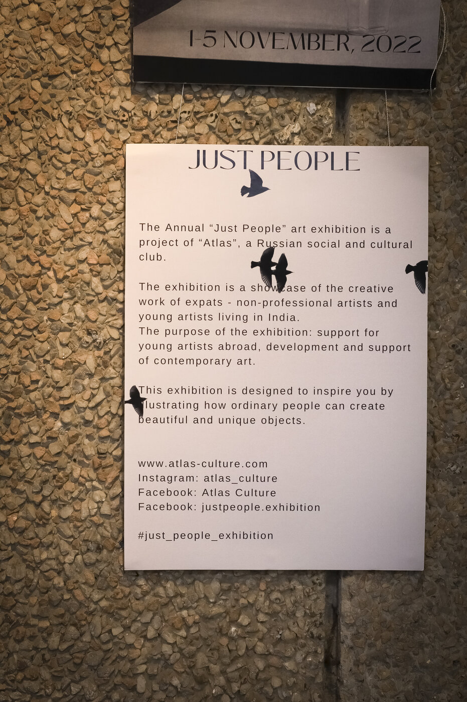 Выставка «Просто Люди» представляет демонстрацию творческих работ непрофессиональных и начинающих художников, проживающих в Индии и вдохновившихся этой страной. Цель выставки: поддержка молодых художников за рубежом, развитие и поддержка современного искусства.